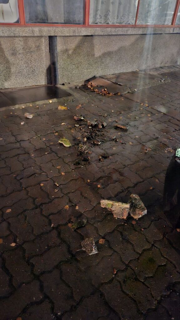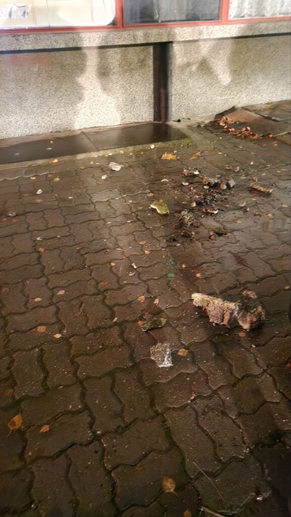 Читател на "Актуален глас" изпрати снимки на редакционния имейл, на които ясно се виждат отчупени фрагменти на земята. На кадрите се различават отломки със значителни размери, падащи от високо, които представляват реална опасност за преминаващите пешеходци.