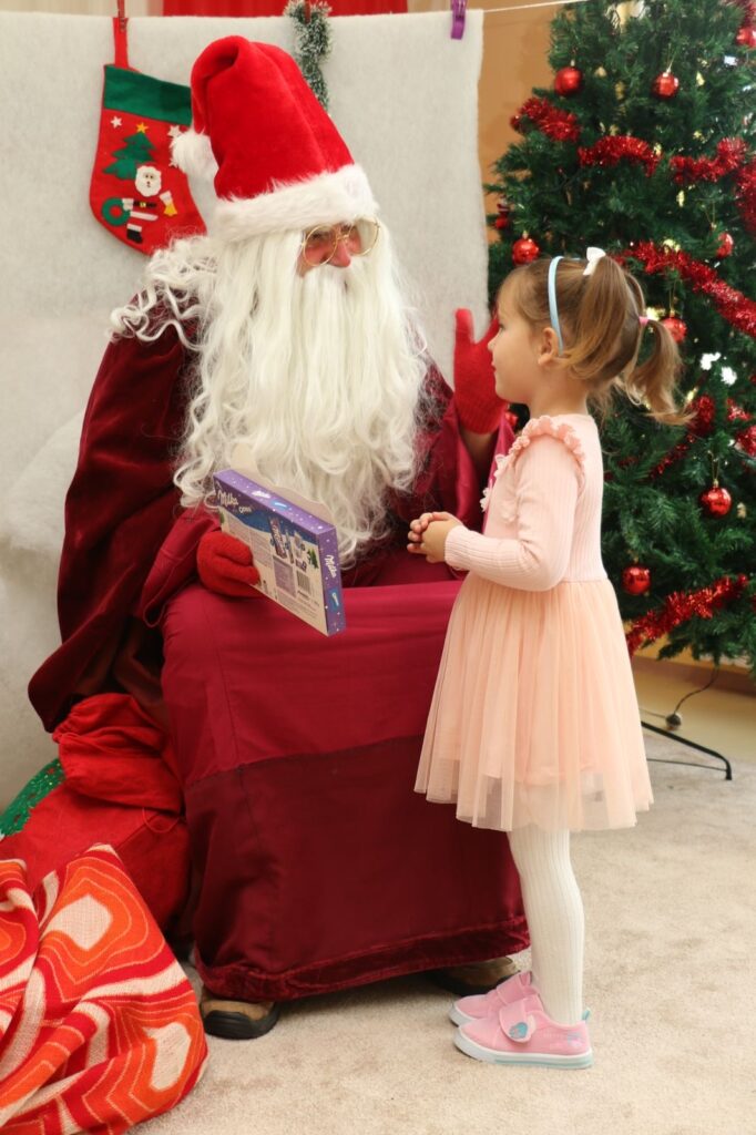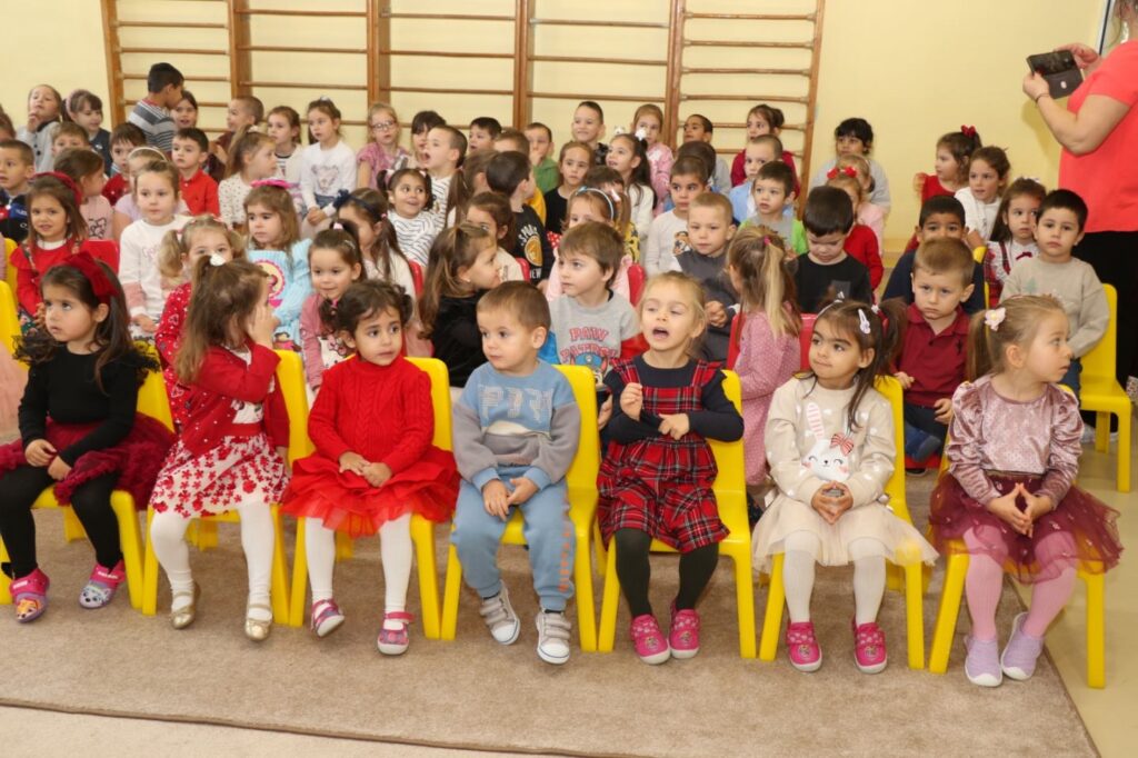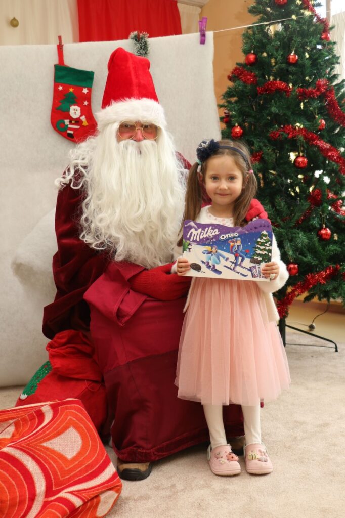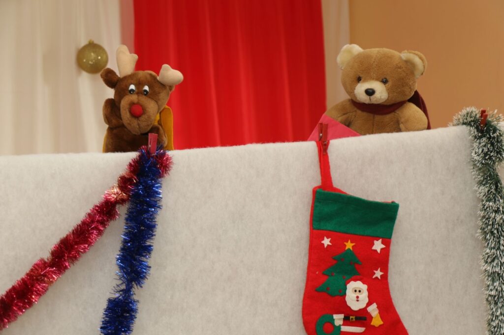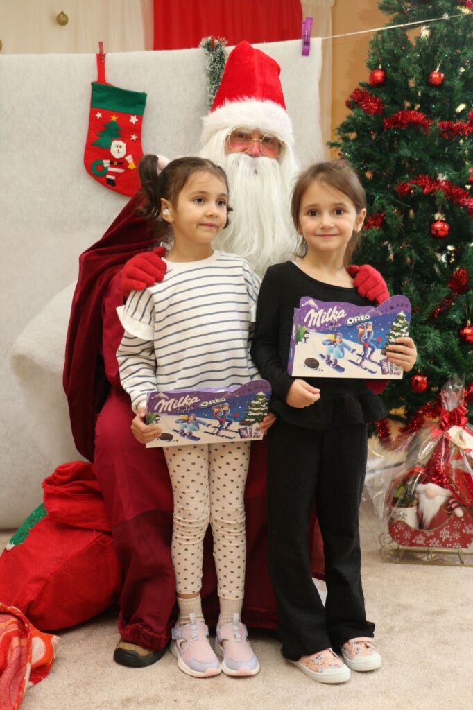 Празникът започна с куклен театър, който бързо увлече малките зрители. След спектакъла децата с вълнение посрещнаха Дядо Коледа, който пристигна с пълен чувал подаръци.