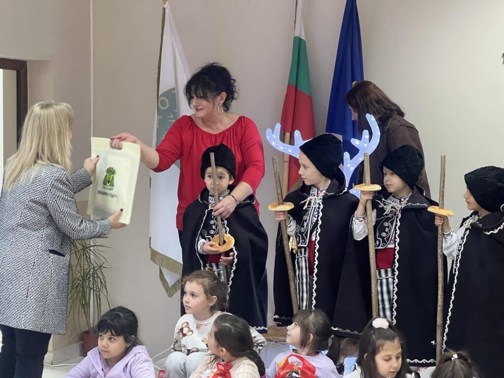 Децата изпълниха песни и наричания за здраве и берекет, а общинското ръководство ги поздрави и им връчи традиционни дарове.