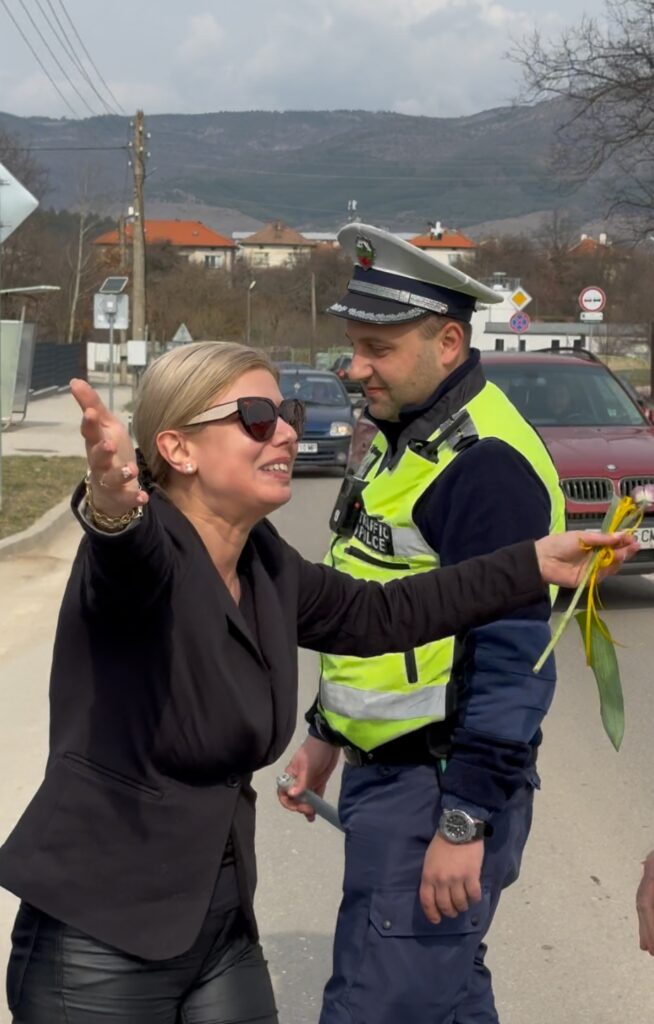 По повод Международния ден на жената служители на РУ-Годеч отправиха специален жест към дамите зад волана. Вместо обичайната проверка полицаите спираха шофьорките с поздравления и цвете за празника.